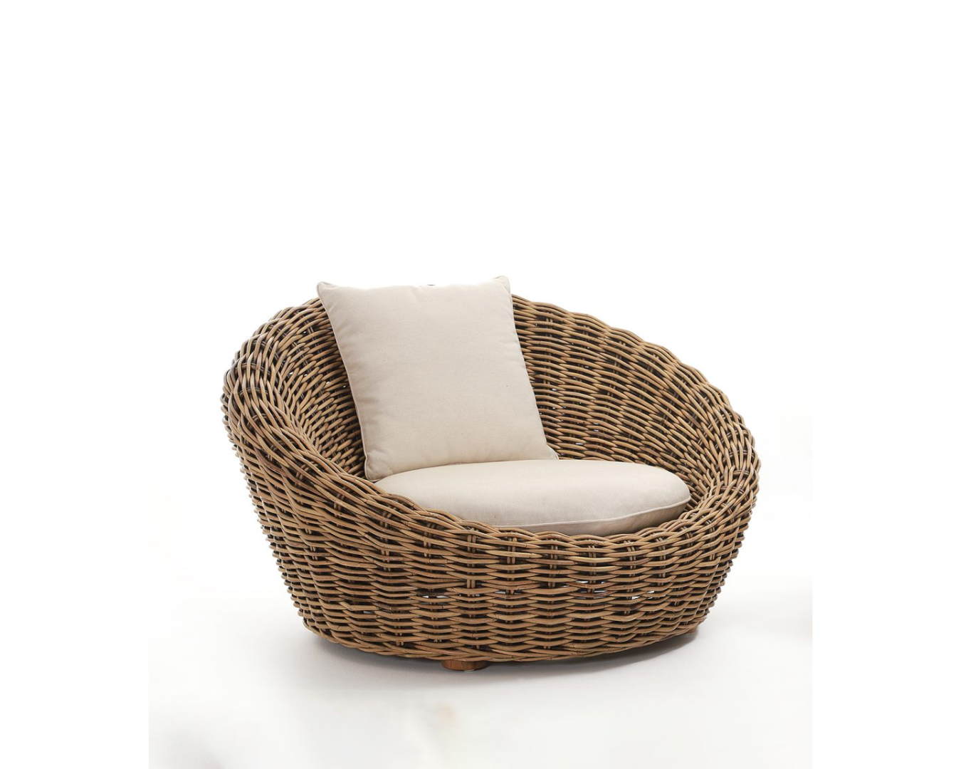 Poltrona de terraza syracusa. Estructura y tejido en vara de rattan con corteza.