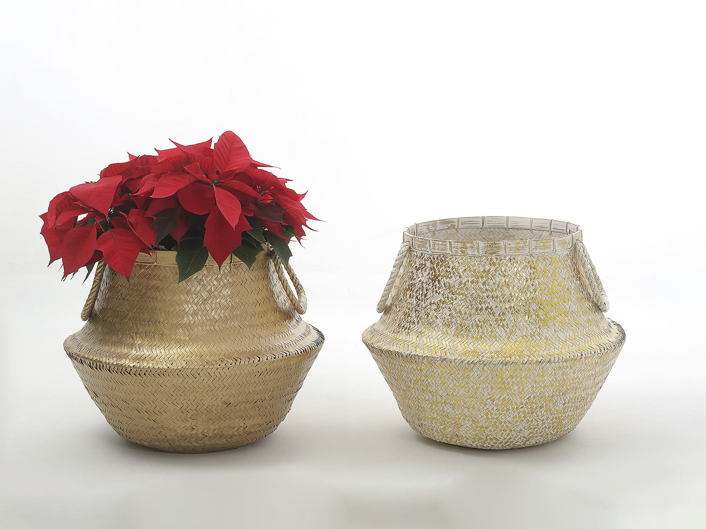 Canasto c/agarr dorado wash teluk. Canasto elaborado en cáscara de rattan con agarraderas en cabuya naútica.