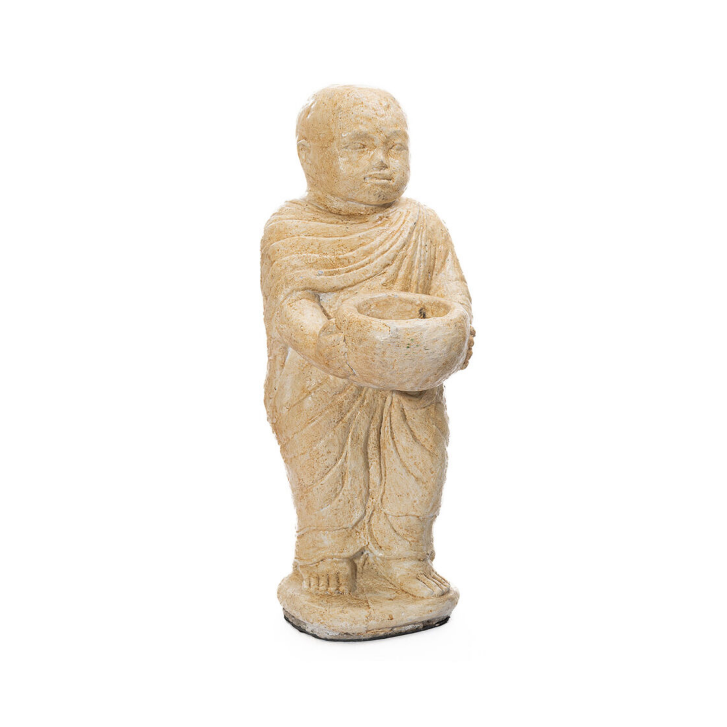 Monje con bowl blanco tibetano. Pieza elaborada en piedra y cemento.