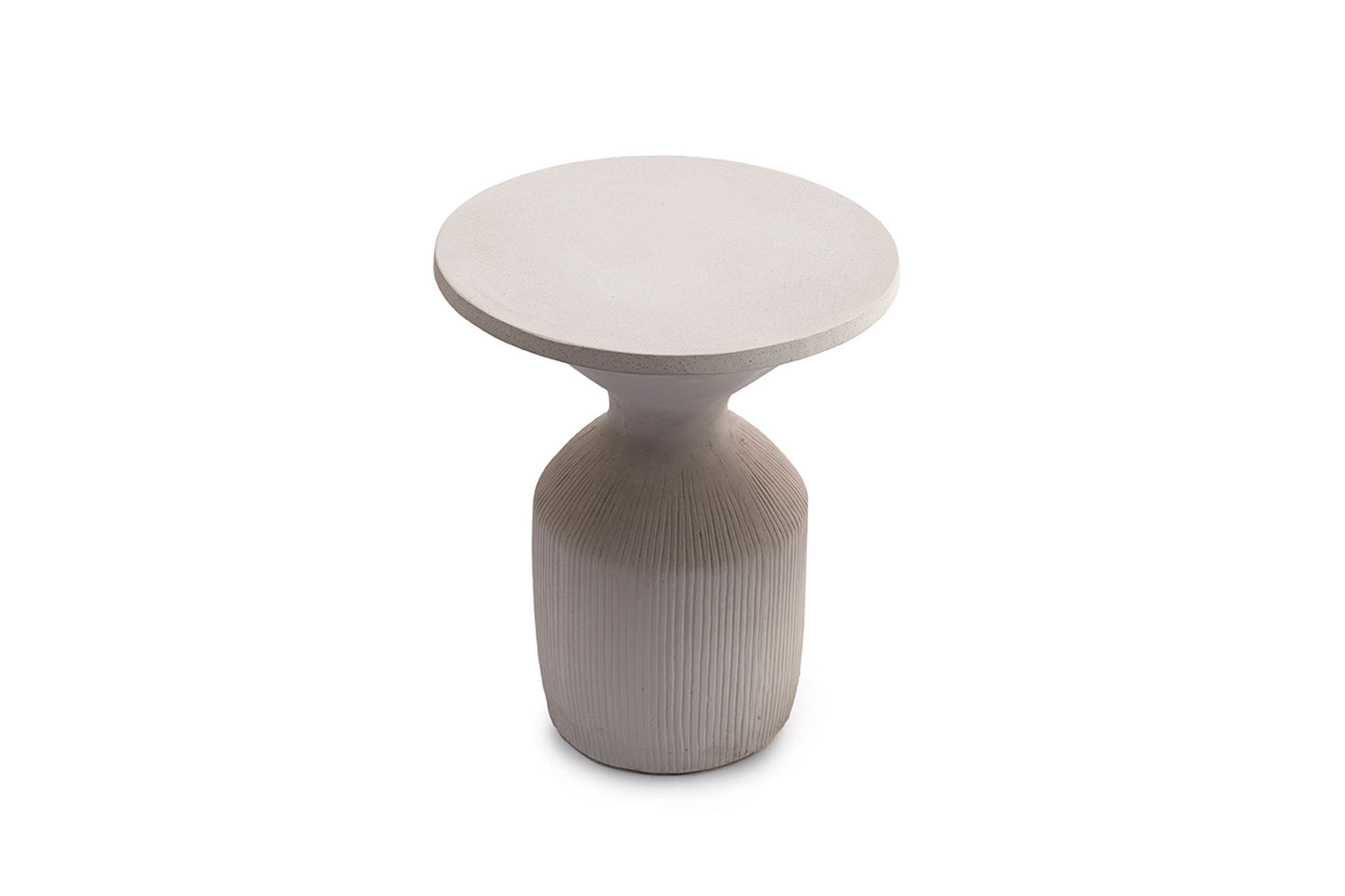 Mesa aux diam 40.5x51.5cm blc tulipan. Pieza elaborada en microcemento blanco.
