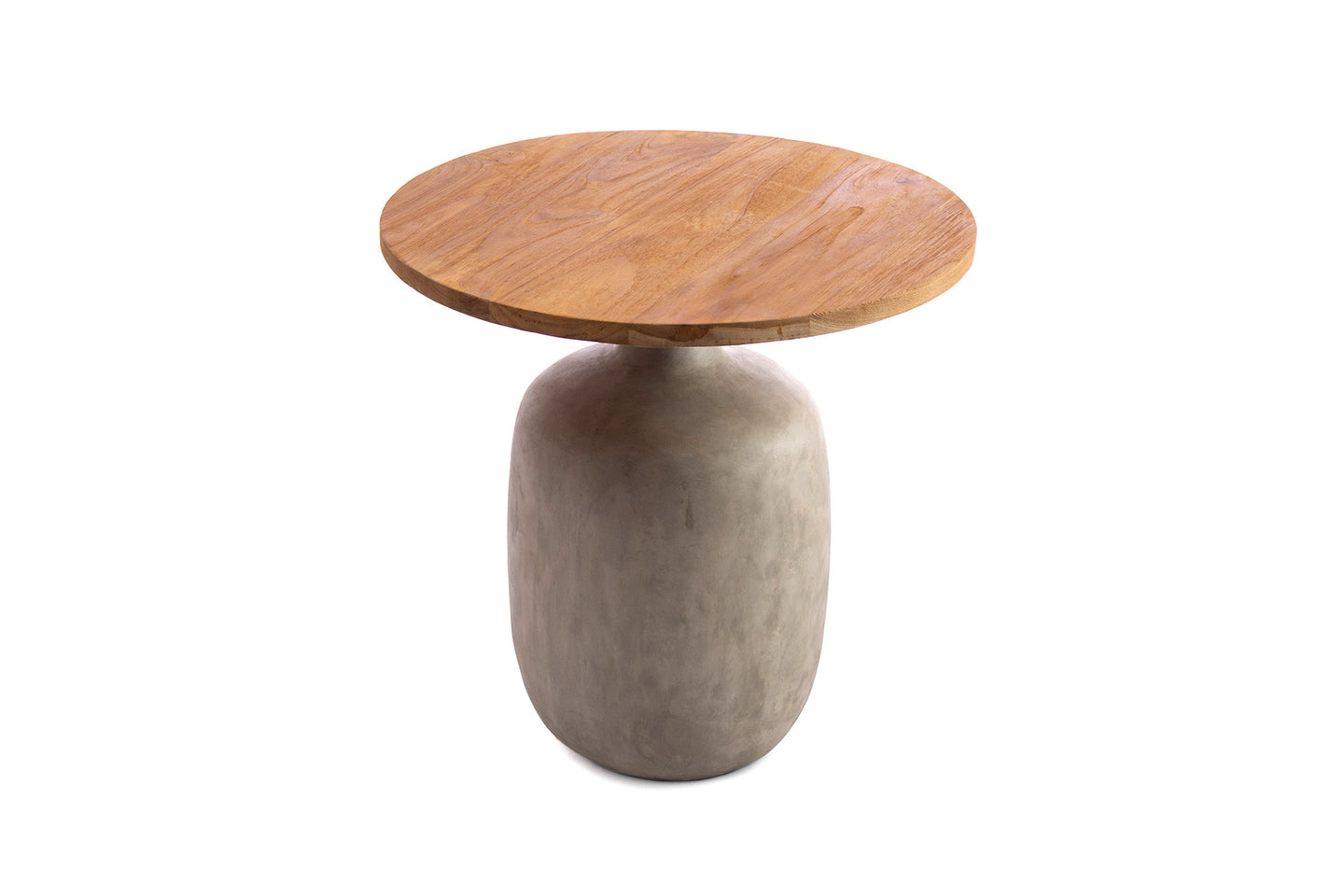 Mesa auxiliar diam 50x51cm gr verbena. Pieza elaborada en microcemento, superficie en madera teca.