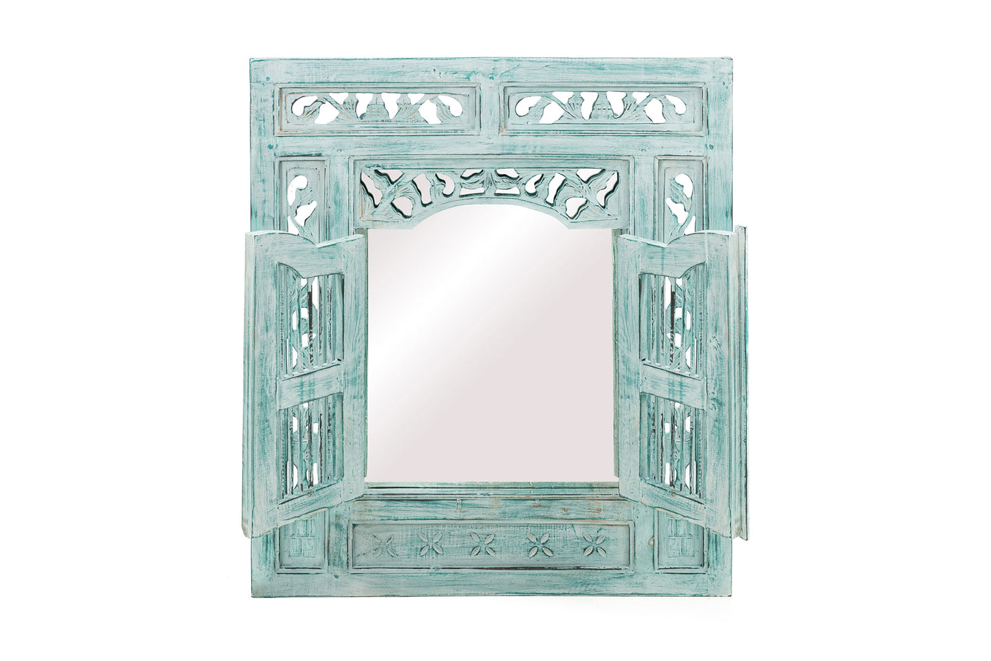 Ventana espejo 80x90 verde xian. Ventana espejo elaborada en madera tallada.