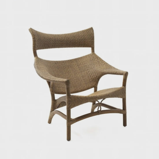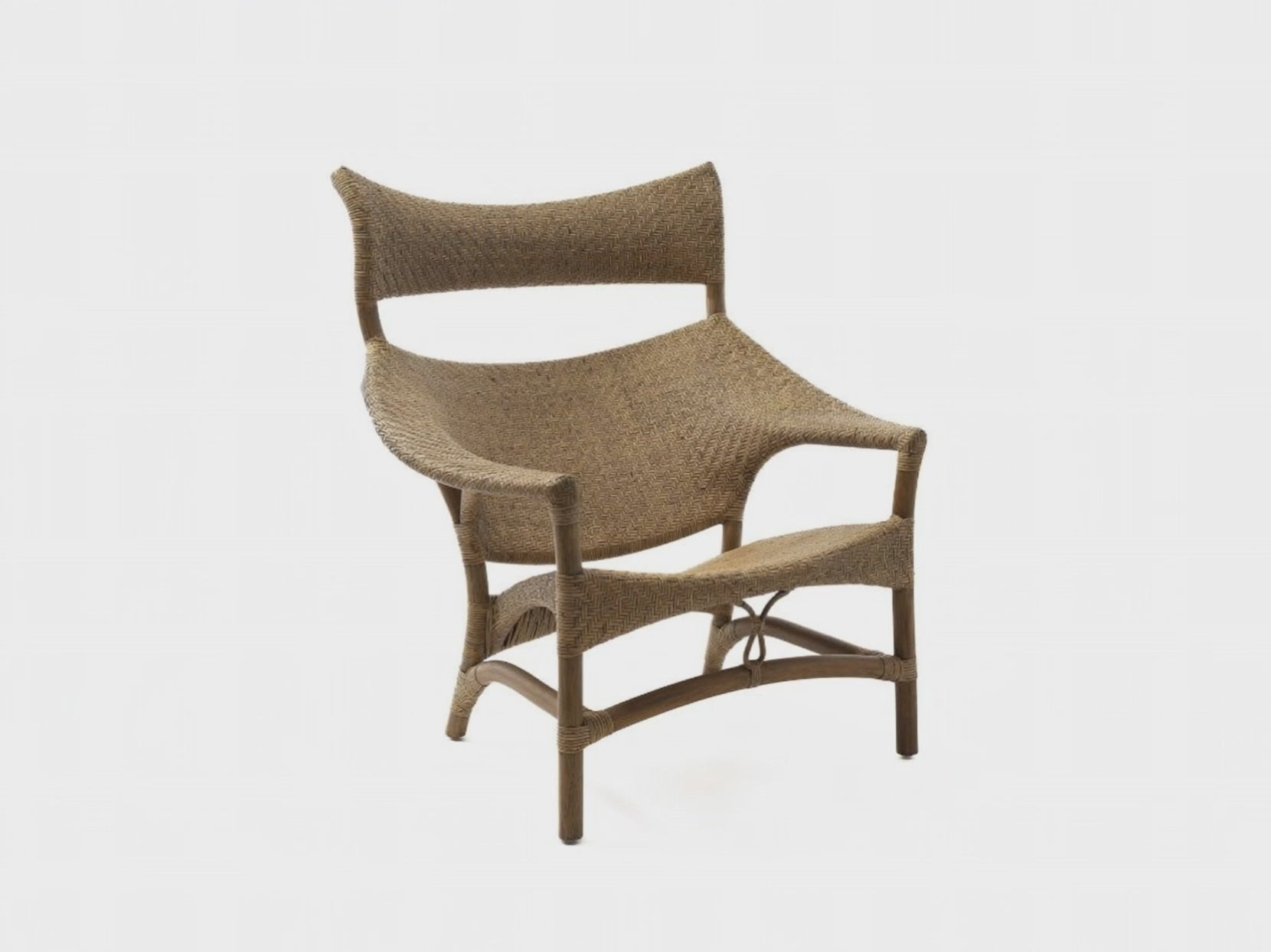 Silla ocasional anticado zeus. Estructura en vara de rattan, tejido en cáscara de rattan.